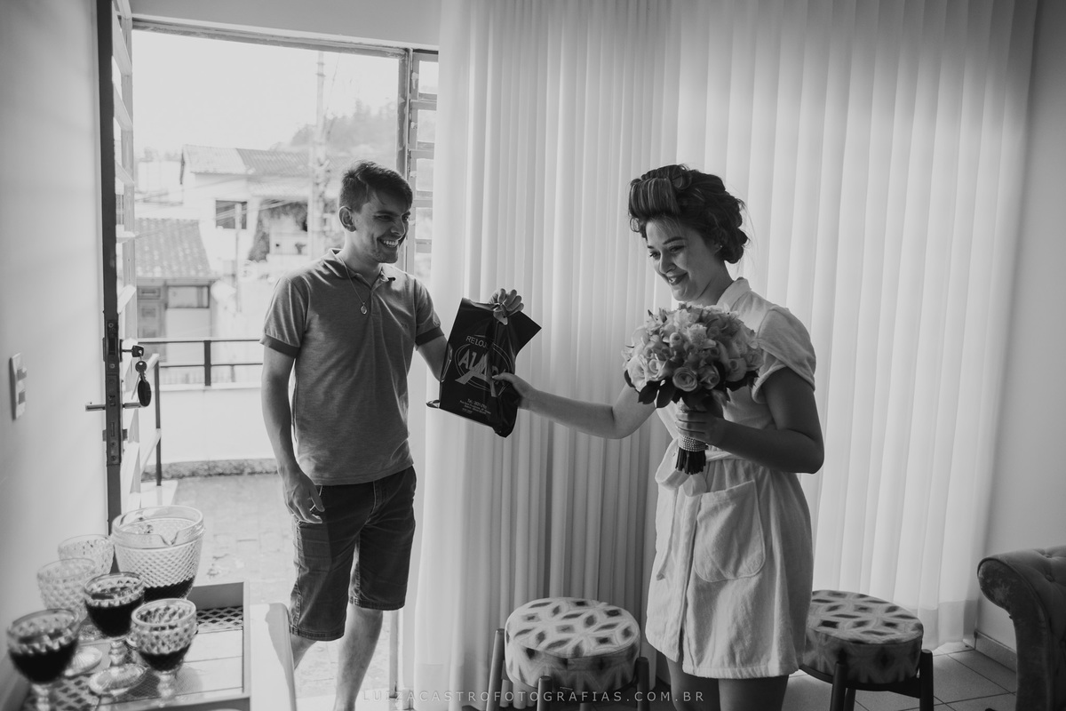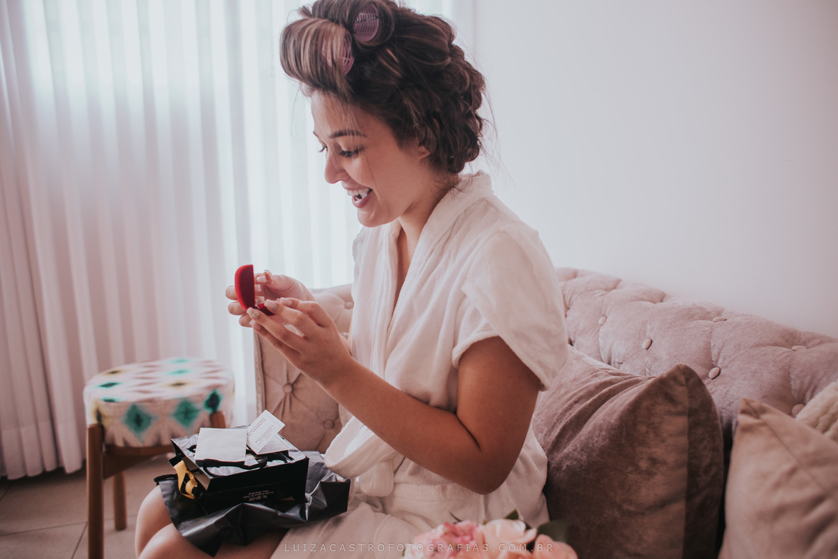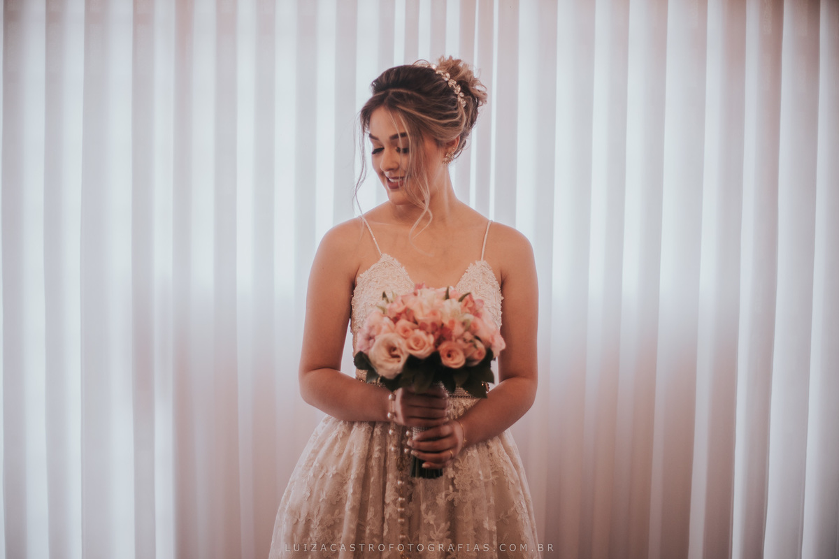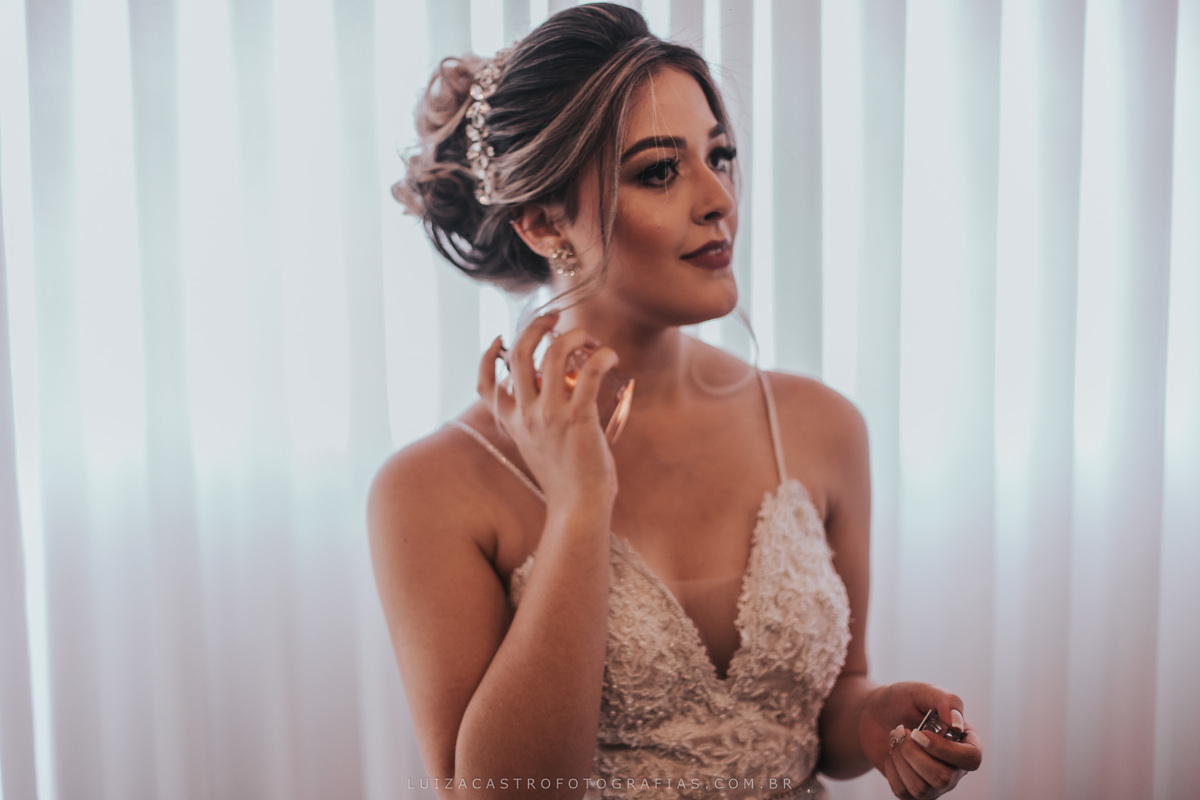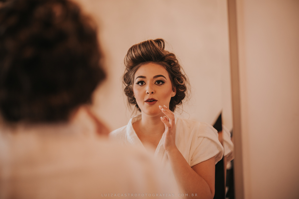 Uma noiva tranquila, linda e de um bom gosto inquestionável. Eu pirei nesse vestido dela, olha que coisa mais lindaaaaa!!! O making of foi no espaço da Ludmilla Figueiredo, que fez uma maquiagem linda (e com cara de rica segundo a noivinha Fabi kkkk). Eu amo passar essas horas antes do grande momento com a noiva e acompanhar de pertinho essa ansiedade para o "sim" <3