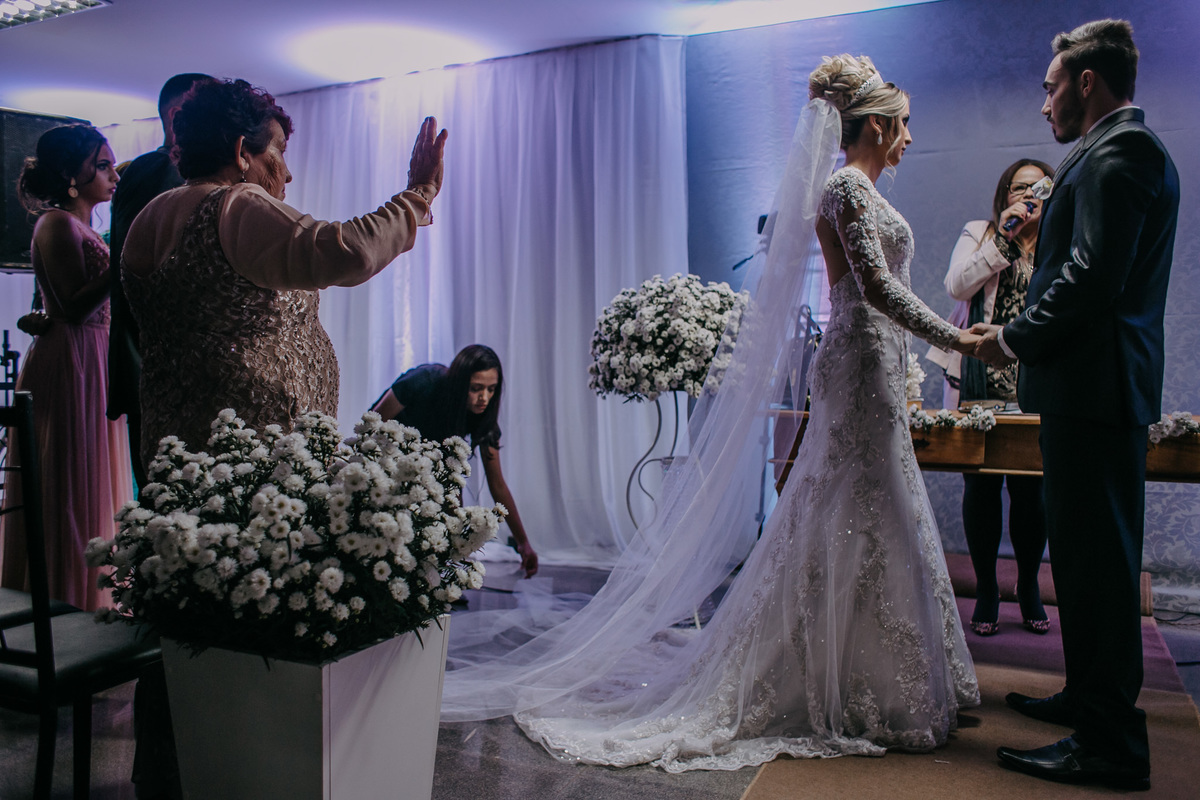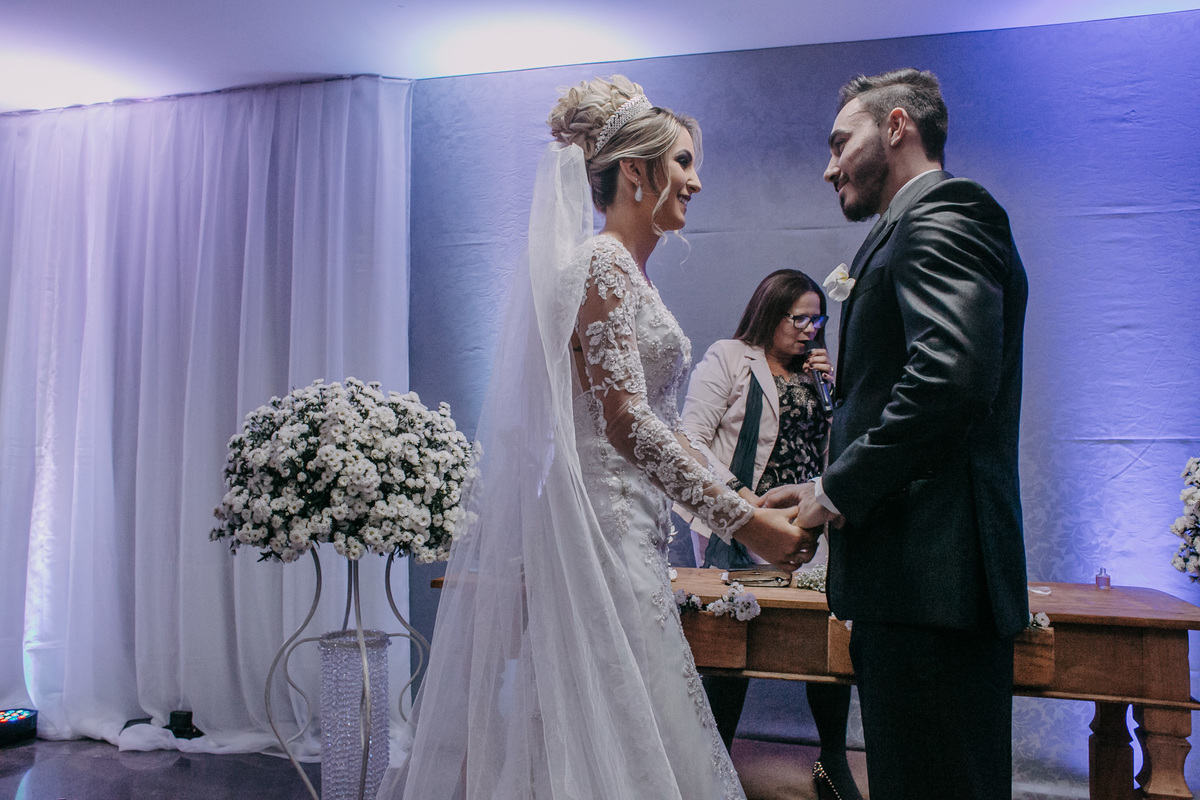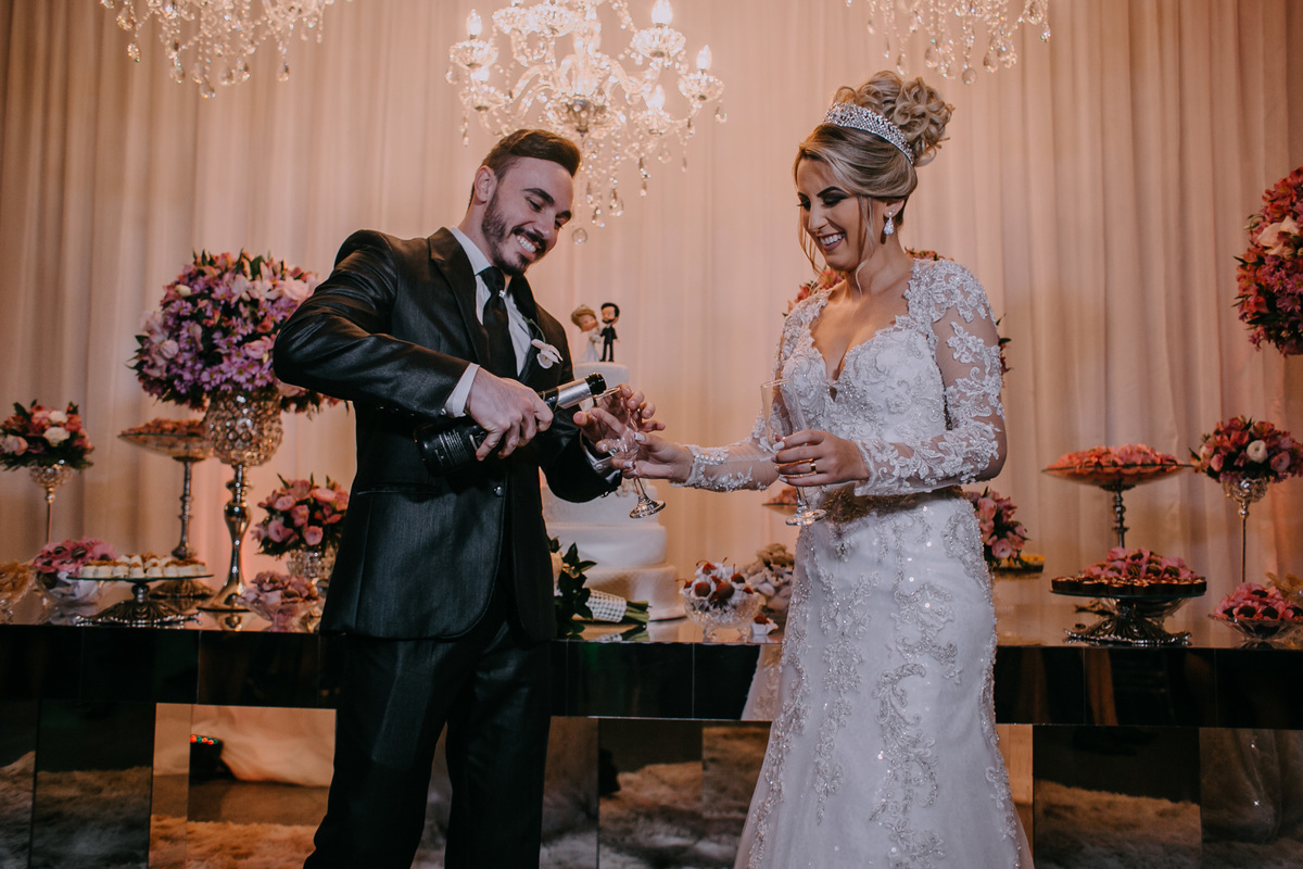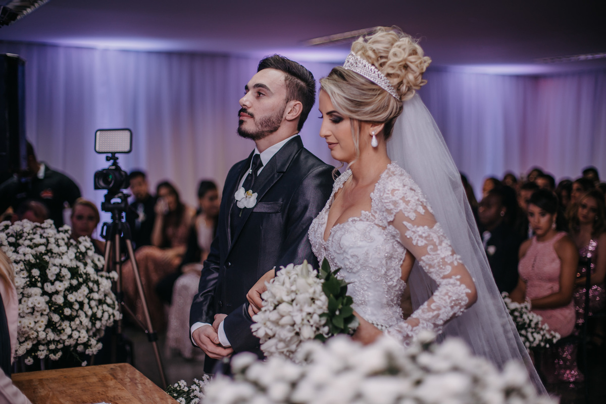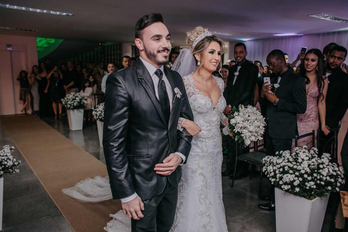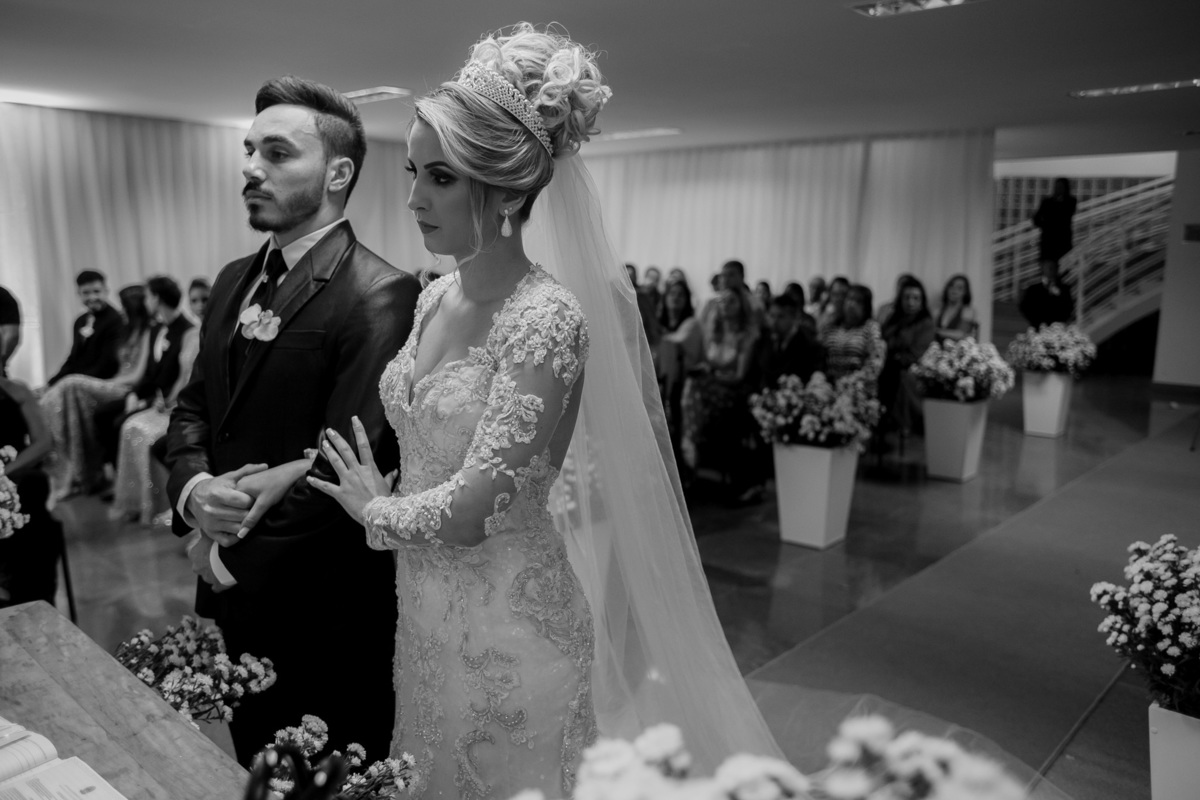 Vestido e traje do noivo: Mônica Noivas